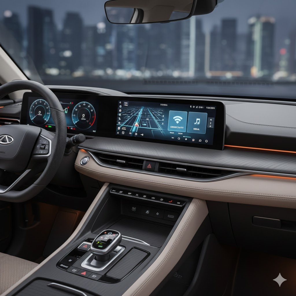 Chery Jaecoo J5 membawa teknologi infotainment yang relevan untuk pengguna masa kini. Layar sentuh berukuran besar mendukung konektivitas smartphone, navigasi, dan perintah suara. Sistem audio berkualitas tinggi menambah pengalaman berkendara. Chery juga menyematkan fitur-fitur interaktif yang memudahkan pengguna mengakses informasi kendaraan, kontrol hiburan, hingga pengaturan kenyamanan interior.
