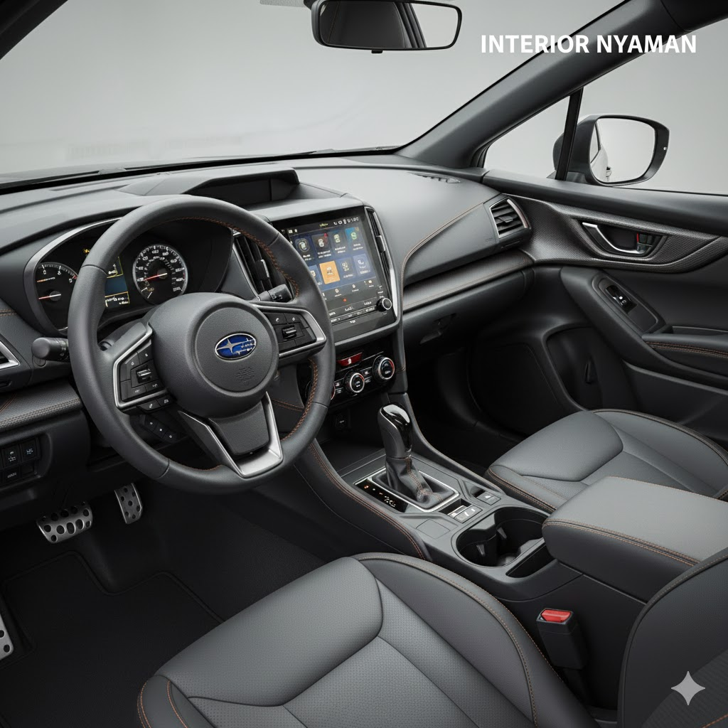 Saat memasuki kabin, Subaru Crosstrek memberikan kenyamanan yang seimbang dengan fungsionalitas. Kursi ergonomis menghadirkan pengalaman duduk yang mendukung perjalanan panjang. Tata letak dashboard dibuat intuitif dengan panel instrumen modern dan layar infotainment yang mudah dioperasikan. Material soft-touch di beberapa bagian menambah kesan berkualitas pada interior. Ruang kaki dan kepala yang lega membuat kabin terasa nyaman bagi pengemudi maupun penumpang.